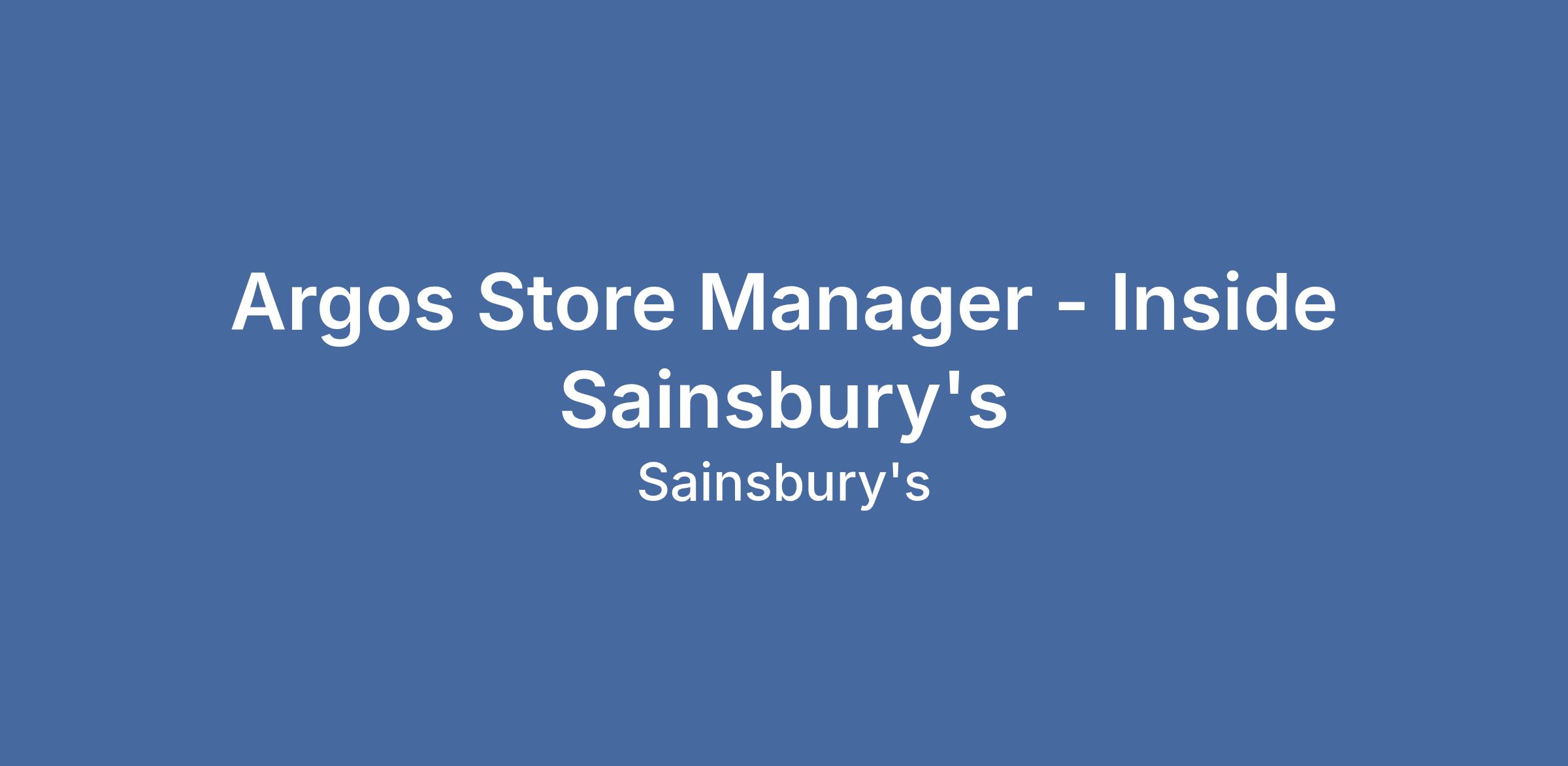 Argos Store Manager - Inside Sainsbury's