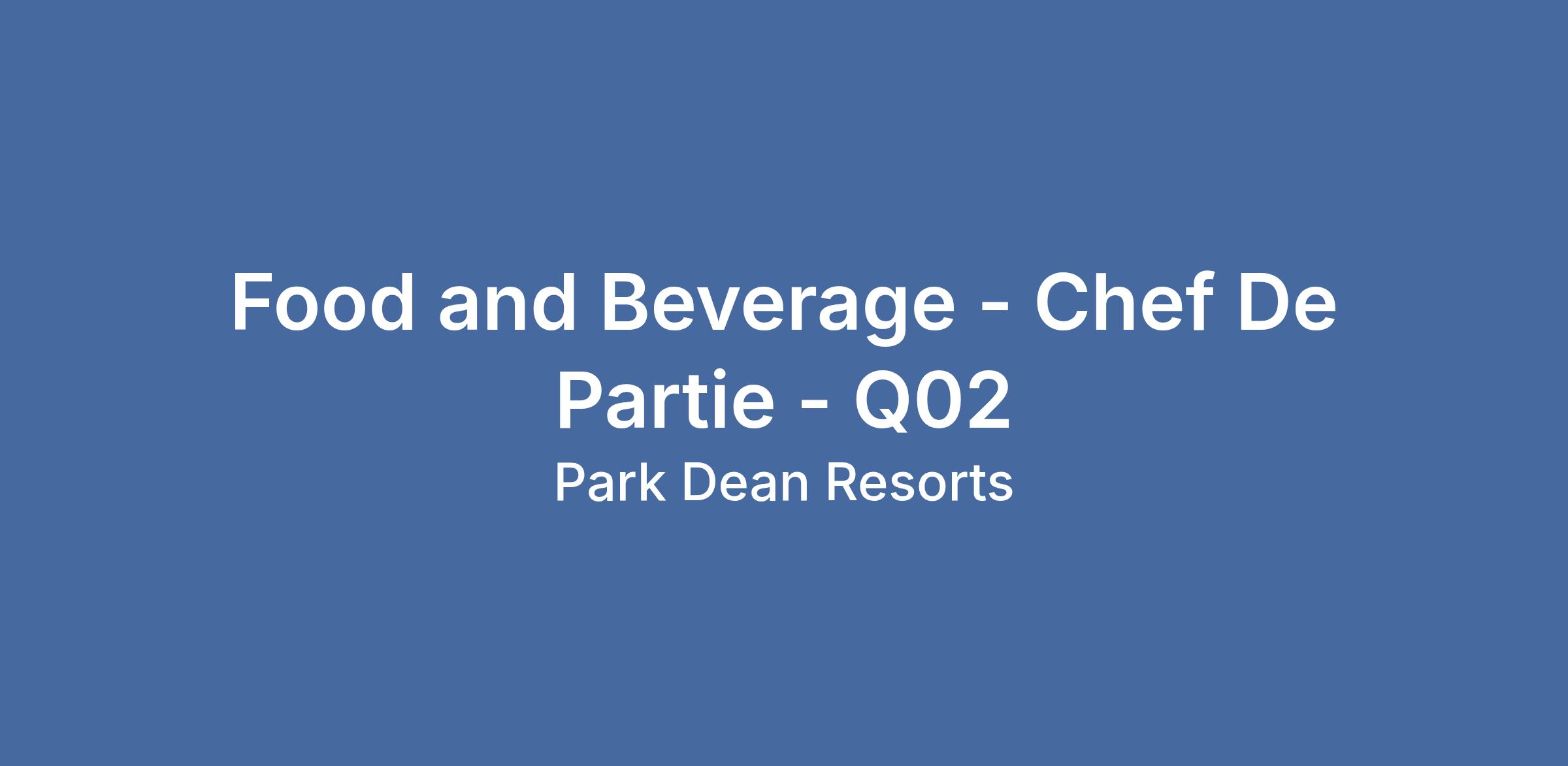 Are you a creative, hands-on chef who loves motivating a team and delivering amazing food? We’re looking for a Chef de Partie to join our vibrant kitchen team at Parkdean Resorts.