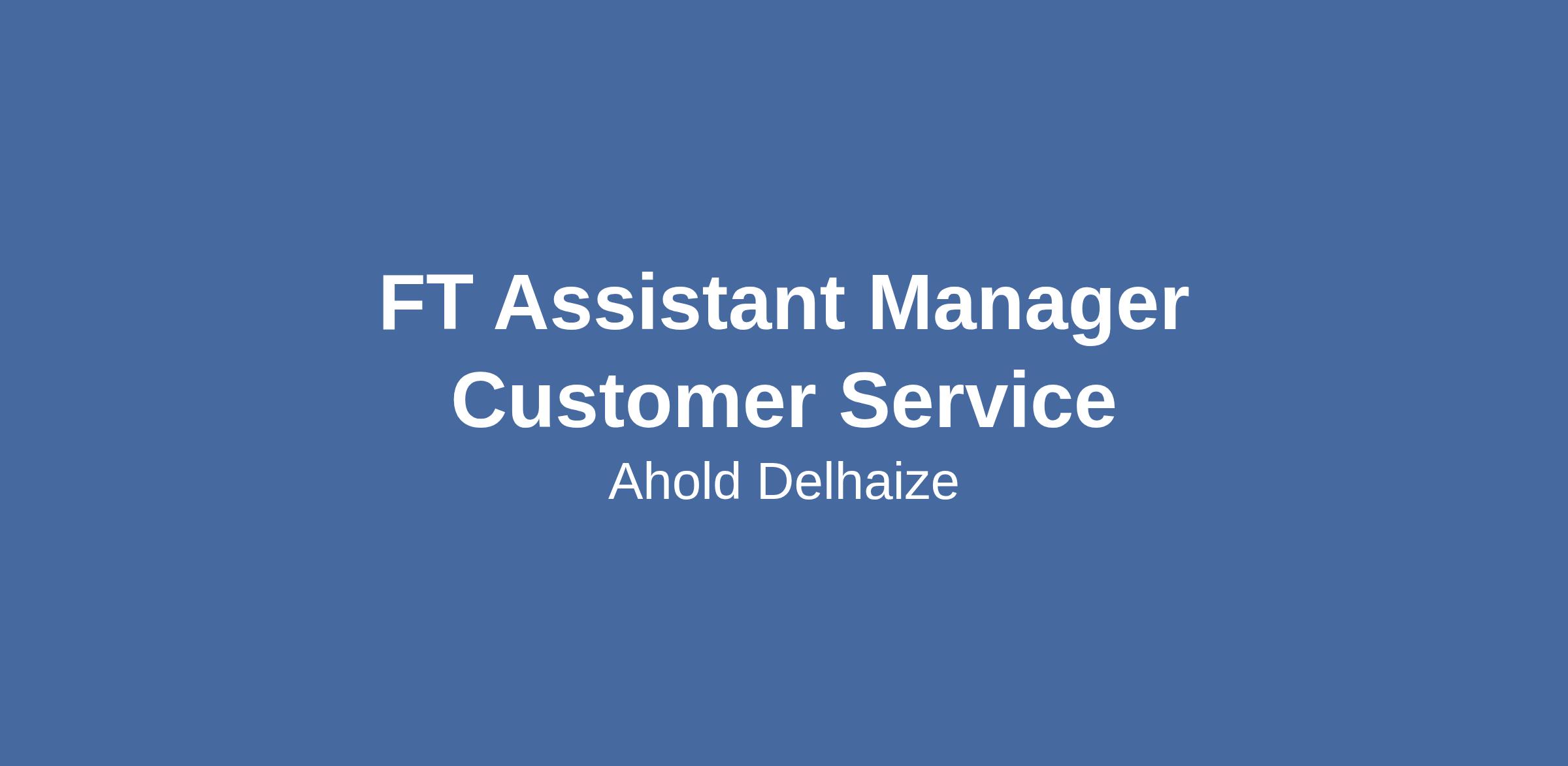 FT Assistant Manager Customer Service